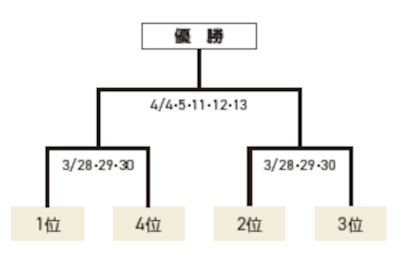 - 【3位・4位】 プレーオフ・セミファイナルの敗者で、レギュラーシーズン上位チームを3位とする