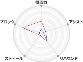 | 23-24 Wリーグ レギュラーシーズン | 姫路 | 7 | 6 | 51.85 | 25.00 | 75.00 | 1.14 | 1.71 | 2.86 | 0.71 | 0.43 | 5.29 |
