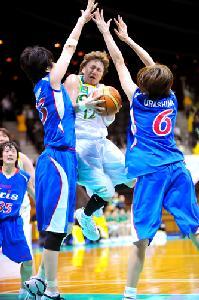 3Q: お互いにシュートが決まらず、5分を経過しても44-32と得点が伸びない。JOMOはセンター#14山田を基点としてオフェンスを展開するがシュートが決まらず、一方デンソーはJOMOのディフェンスに押されシュートチャンスをつかむことができない。ここでJOMOはセンターを#15諏訪に代え、ディフェンスのプレッシャーを一層強めるが、デンソーは#35小畑、#7田中のシュート、#33森川のバスケットカウントで残り1分40秒には49-41に詰め寄る。しかしここからJOMOは#1大神のシュートなどで連続得点を挙げて、53-41と12点差で3Qを終える。