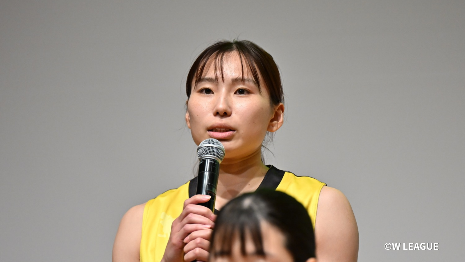 「この度は大変光栄な賞をいただきまして、ありがとうございます。たくさんの方に支えられた日々に感謝しながら、これからはいちファンとして、Wリーグの発展を心より願っています。ありがとうございました。」