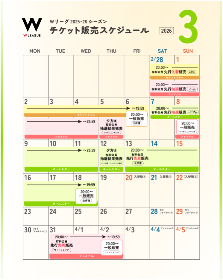 セミファイナルにおいては「Wリーグユニバース」有料会員限定先行抽選「プレリザーブ」を行います。