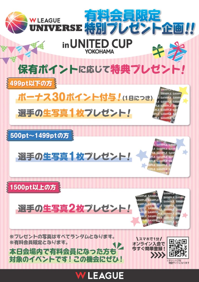 ※会場内「Wリーグユニバースブース」にて、保有ポイント確認画面およびSPECIAL特設ページをご提示ください。