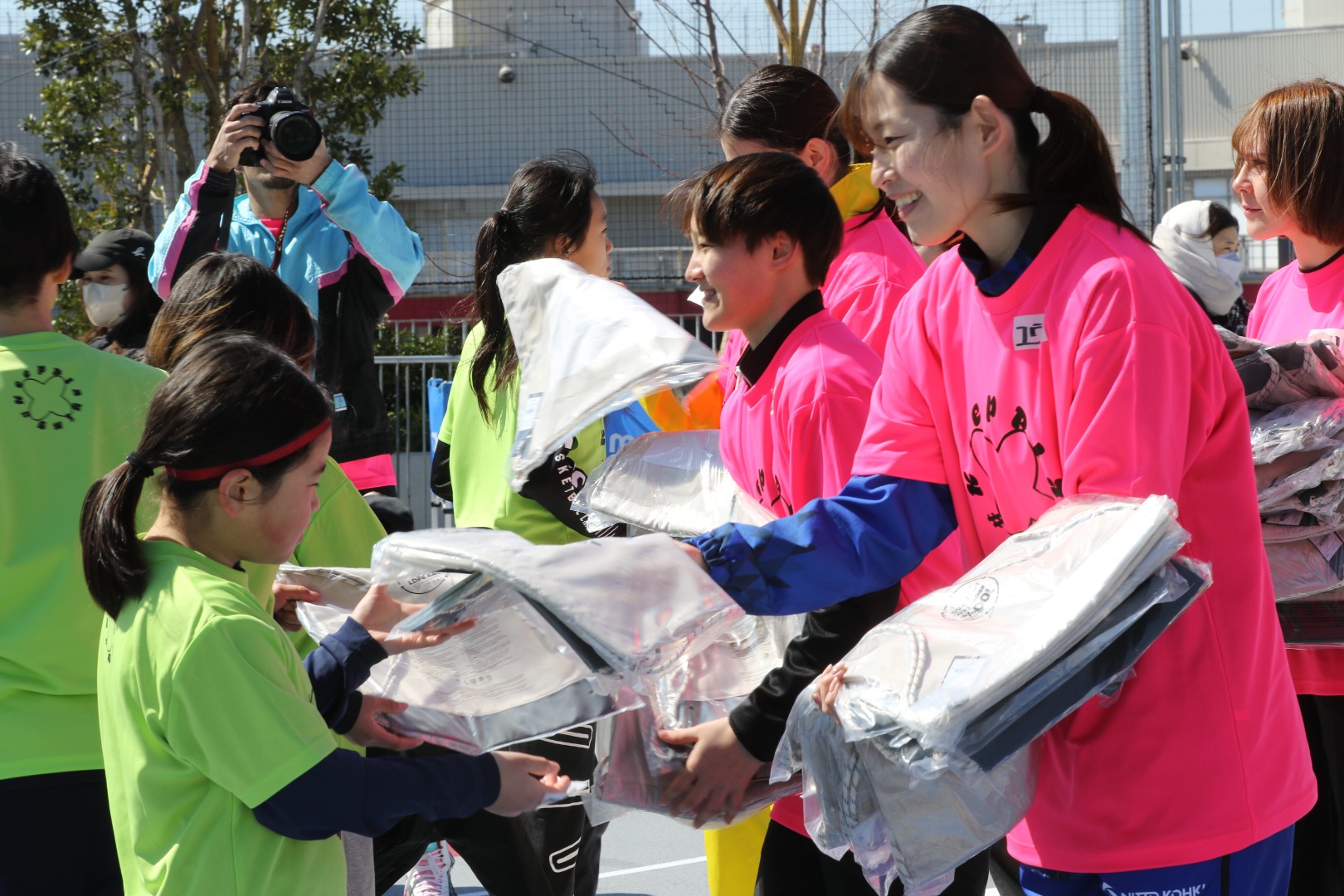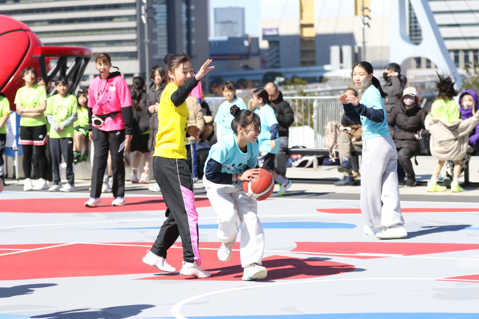 これまでのイベントとは異なり、今回は屋外コートでの実施。この日は天気も良く、終始陽は差していたものの、時折吹く突風にクリニックが始まった頃は寒そうな様子を見せてた小学生たち。それでも、クリニックが進むにつれ、段々と熱を帯び、寒さを吹き飛ばすような動きで熱心にボールを追いかけていました。Wリーグでは今後も『KeepPlaying プロジェクト』を継続して行っていく予定です。