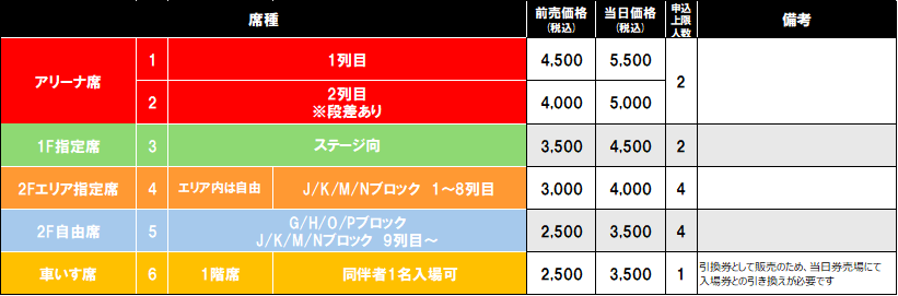 【アリーナ席・1F指定席(車いす席除く)】
